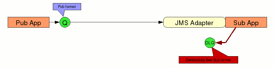 In the sample, the client application would normally use application message formats in application specific queues, and some adapter would convert between this and a standard services message formats in standard service specific queues. Here, we configure the application to use JMS Adapter to translate application messages to standard messages, and put them in standard queues, and vice versa :-