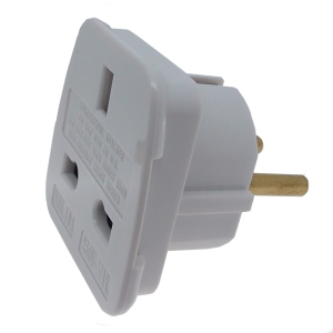 You are on vacation, your hairdryer expects 240V and has a UK 3-pin plug, but the socket is 110V with a US 2-pin plug. You need a lightweight travel adapter.