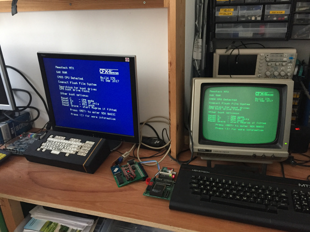 Here we see a MTX "mini", which appear to be a subset of an MTX, capable of running CP/M, using Bill's propeller based 80 column card :-